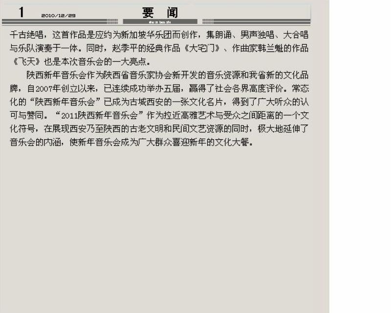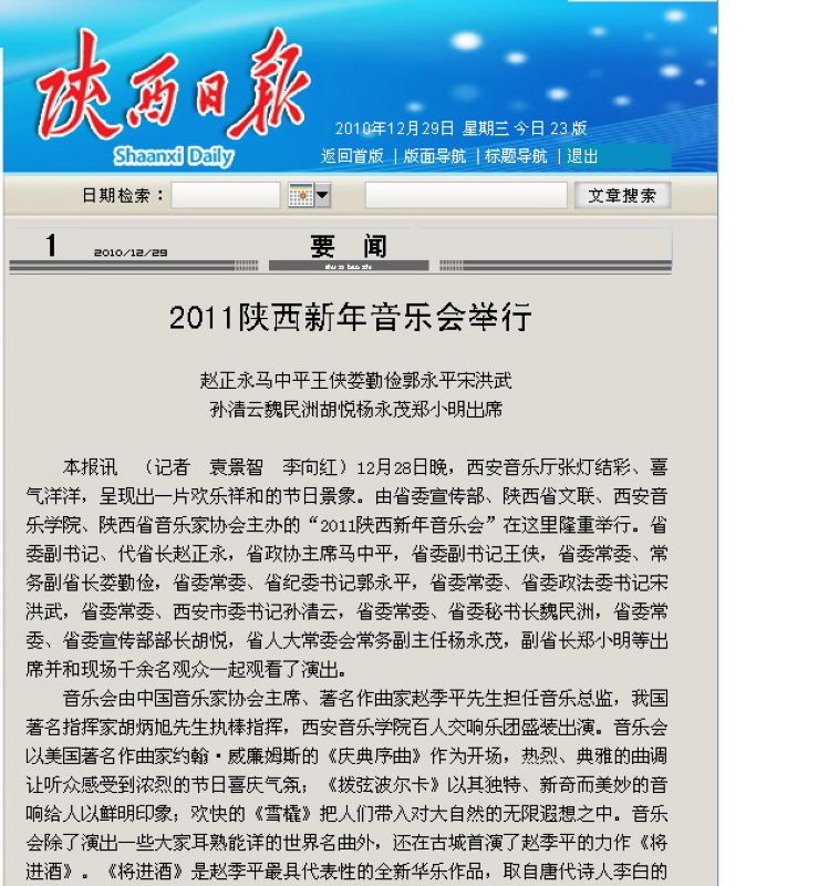 《陕西日报》2010年12月29日第1版 2011年陕西新年音乐会举行