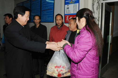 瑞虎辞旧岁,玉兔迎新年。在这2011年元旦节日期间,学院部分员工为了保证节日期间学院的学习生活秩序,仍要坚守在各自的工作岗位。2010年12月31日下午,院领导白陆平、史军胜代表学院看望、慰问了坚守岗位的值班人员。副院长白陆平带领党政办主任于金波、宣传统战部副部长万斌前去北门值班室、4号教学楼慰问保卫处和教务处值班人员,副院级调研员史军胜带领党政办副主任骆玉柏看望了1号公寓值班室和后勤处动力科值班工作人员,并为为值班人员送去了精心准备的食品。领导的关怀,让值班人员感到无比的温暖。