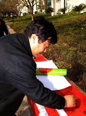 副院长白陆平在横幅上签名