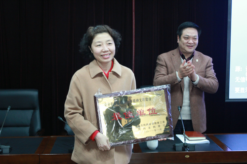 党委书记安宁为精神文明最佳单位的我院民乐系颁发奖牌