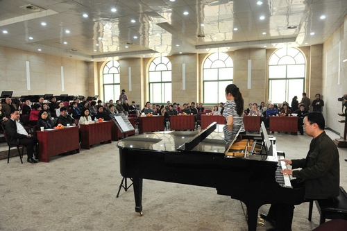 2011年4月9日,中国音乐学院党委书记闫拓时、院长赵塔里木带领声乐歌剧系青年教师代表团来我院访问。我院党委书记安宁,院长赵季平,党委副书记、常务副院长孙卫国,副院长白陆平,院长助理王真与声乐系的全体教职工一同参加了交流会。