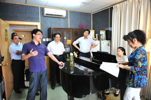 在院党委书记安宁、党委副书记常务副院长孙卫国、纪委书记王平等领导的陪同下,梁宝林同志走进电子音乐工程系特色教室,详细了解教学设备的功能、效果;观摩了声乐系教师的现场教学;参观了校史馆和西北民族音乐展馆;观看了校庆宣传片。之后,听取了安宁同志代表学院所作的工作汇报。