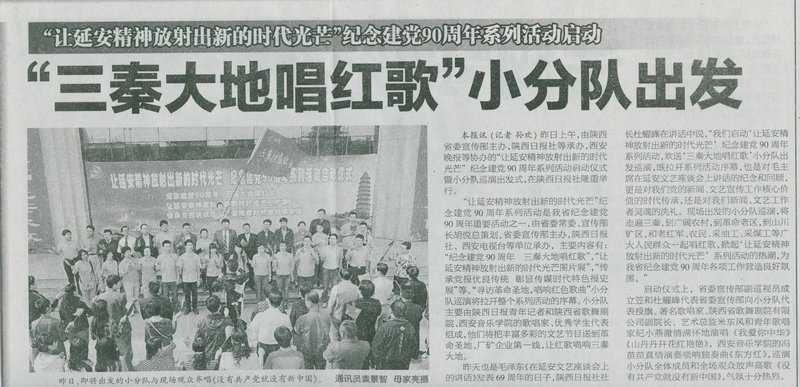 《西安晚报》2011年5月24日第14版 “三秦大地唱红歌”小分队出发