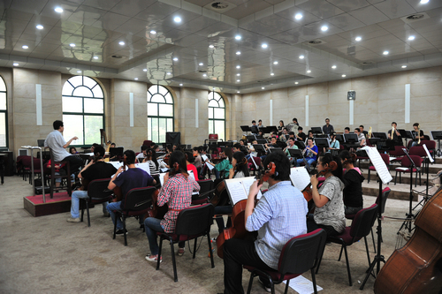担任此次大型音乐会合唱任务分别是声乐系合唱团和音教系合唱团,总计248人,是我院有史以来最大的合唱团演出阵容。演奏任务由管弦系交响乐团担任。目前第二阶段—全面细排阶段基本完成,即将进入第三阶段——彩排演出阶段。从6月2日起,全天候连排,与声乐系合唱团、交响乐团、领唱和指挥磨合。全体演职人员和工作人员,本着既讲艺术又讲政治的大局观念,保证6月8日的演出圆满成功。