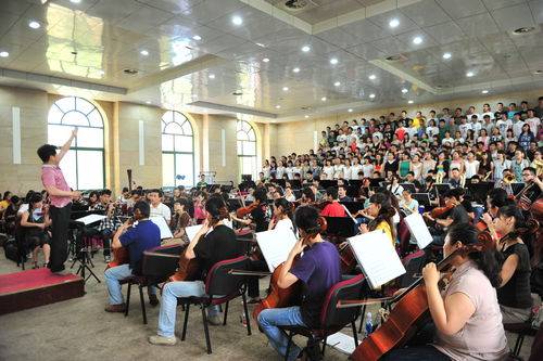 这个端午节我院师生400余人是在排练场度过的,他们在为我院“庆祝中国共产党成立90周年大型交响音乐会”而紧张的排练。下面是他们的一组镜头: