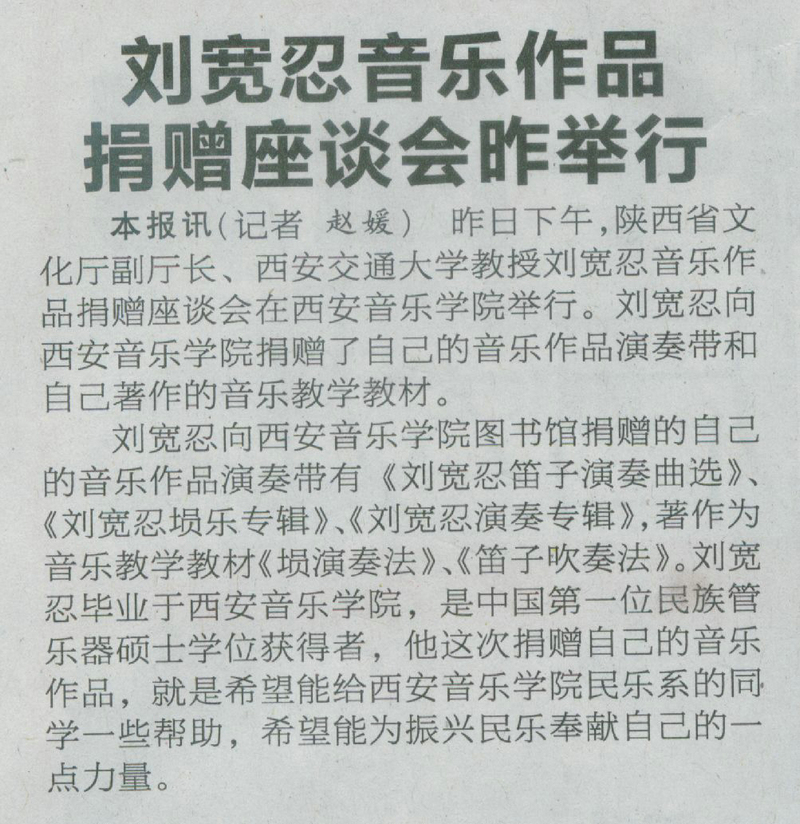 《华商报》B4版 2011年6月3日 刘宽忍音乐作品捐赠座谈会昨举行