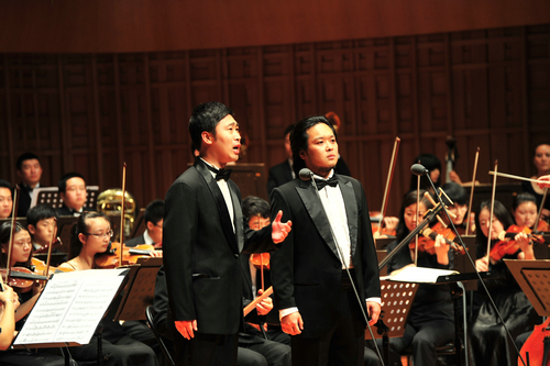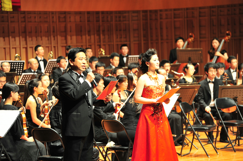 专场音乐会以“永远跟党走”为主题,分上下两篇,共上演了建党以来不同时期的13首经典曲目。上篇主要上演了交响乐《红旗颂》、独唱歌曲《唱支山歌给党听》《春天的故事》《走进新时代》《西部扬帆》等;下篇上演的是大合唱《黄河大合唱》和《没有共产党就没有新中国》。指挥由中央音乐学院教授杨力以及我院青年指挥侯颉担任,我院优秀中青年教师担任独唱,交响乐团与声乐系、音教系组成的合唱团,以400人的最强阵容,唱响了庆祝中国共产党成立90周年的最强音。