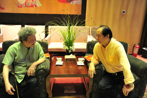 赵季平院长与著名指挥家杨鸿年(左)演出前交流