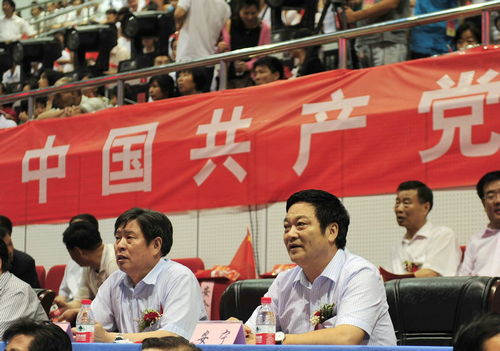 教育厅厅长杨希文与我院党委书记安宁在主席台就坐