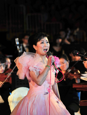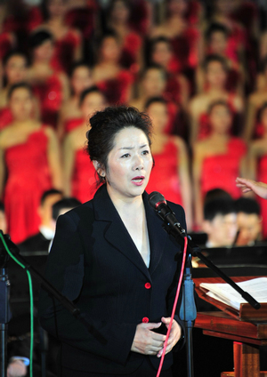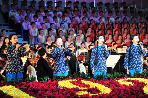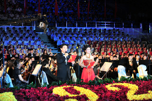 全场观众齐声高唱《没有共产党就没有新中国》