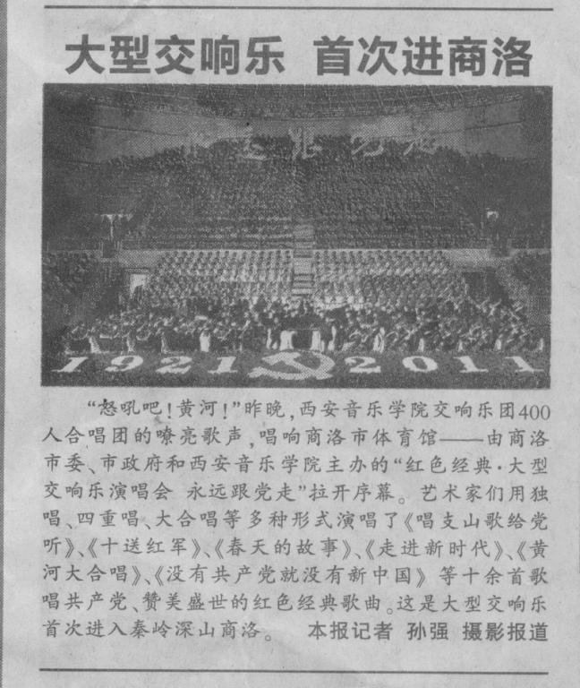 《华商报》2011年6月10日 A12版 大型交响乐 首次进商洛