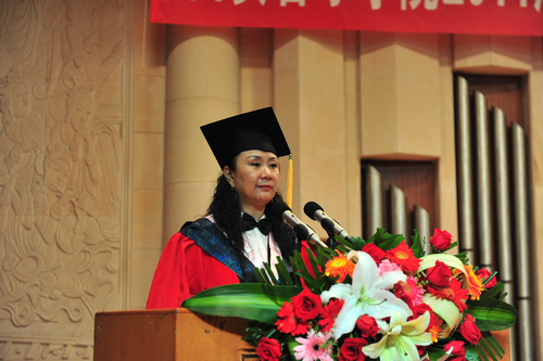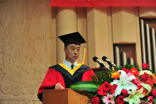 安宁做了总结讲话。他由衷地向2011届所有硕士研究生表示热烈的祝贺,向辛苦耕耘的硕士研究生导师及教职员工们表示感谢,并语重心长、饱含深情地向2011届硕士研究生们提出了三点希望:一、希望同学们坚定理想信念,保持学以致恒的精神和追求卓越的信心;二是希望同学们不断完善自己的人格品质,修身进德,德艺双彰;三是希望同学们扬帆远航,毋忘母校。感人肺腑的忠言赢得所有与会者的热烈掌声。