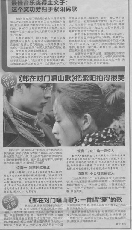 《华商报》2011年6月20日 A16版 《郎在对门唱山歌》上海电影节获三等奖