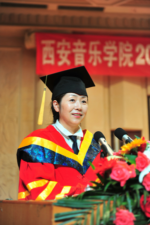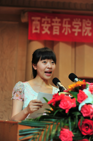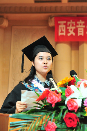 下午15点30分,党委书记安宁、副院长白陆平教授出席了仪式。副院长安金玉主持仪式并宣读了《西安音乐学院2011届本科毕业生学士学位授予决定》,安宁为舞蹈系、声乐系、管弦系、民乐系毕业生颁发了学位证书。毕业生代表吴骏、在校生代表刘梅分别发言,白陆平代表院领导讲话,向即将告别母校、走向社会的毕业生表示热烈的祝贺,并希望毕业生走出校门后继续学习,努力工作,有所作为,为母校争光。