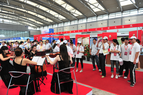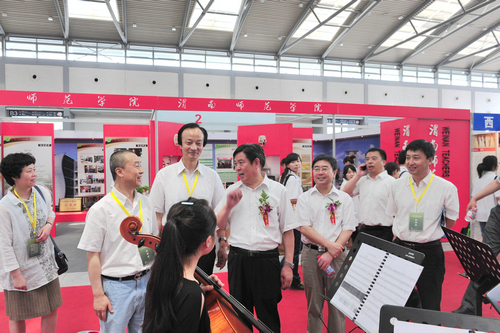各院校展位精彩纷呈,多姿多彩。我院展位设计开放、大气、简约,有创意、有特色,展现了我院的办学理念和办学实力,令众多考生和家长心驰神往、穿梭往返,令兄弟院校参展者由衷叹好、翘首回望。他们说:“老远一看,就是音乐学院的展位。”兄弟院校的领导也纷纷到我院展位参观祝贺。可见,我院理念创新、文化创意的软实力得到与会者的认可,勤俭办会也能成事。