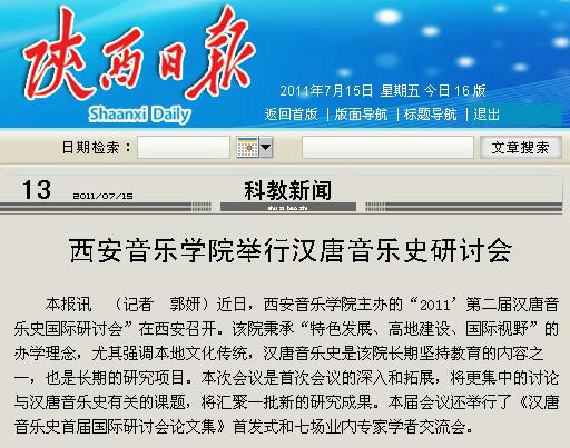 《陕西日报》2011年7月15日第13版 西安音乐学院举行汉唐音乐史研讨会
