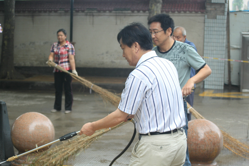 2011年的暑假,后勤处的同志们放弃了整个假期的休息,先后完成了一号住宅楼的清空工作、专家公寓卫生间的改造、家属区多层住宅楼暖气进户主阀门改造、一号学生公寓洗澡水系统改造以及学生宿舍、教学楼教室琴房的修缮工作,一、二号餐厅和教育超市设备的维护维修以及二号餐厅五层、二层漏水的维修,并对全院10部电梯进行了大修,完成了2台燃煤锅炉的检修等工作,为确保新学期开学做好了充足的准备。为进一步提高学院公共区域卫生质量,8月22日,主管后勤工作的院长助理王真教授和后勤处张鉴处长亲自动手冲洗学院主干道,为创建干净、舒适的环境付出了辛勤的汗水。