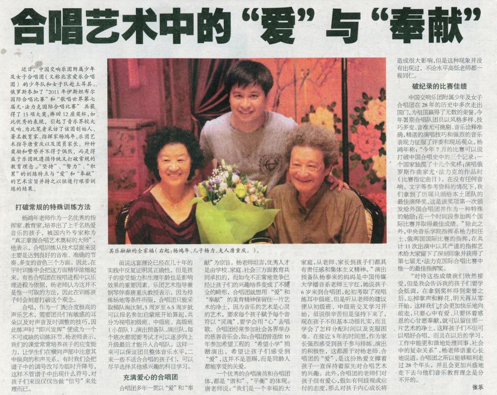 《音乐周报》2011年9月14日 第九版 合唱艺术中的“爱”与“奉献”