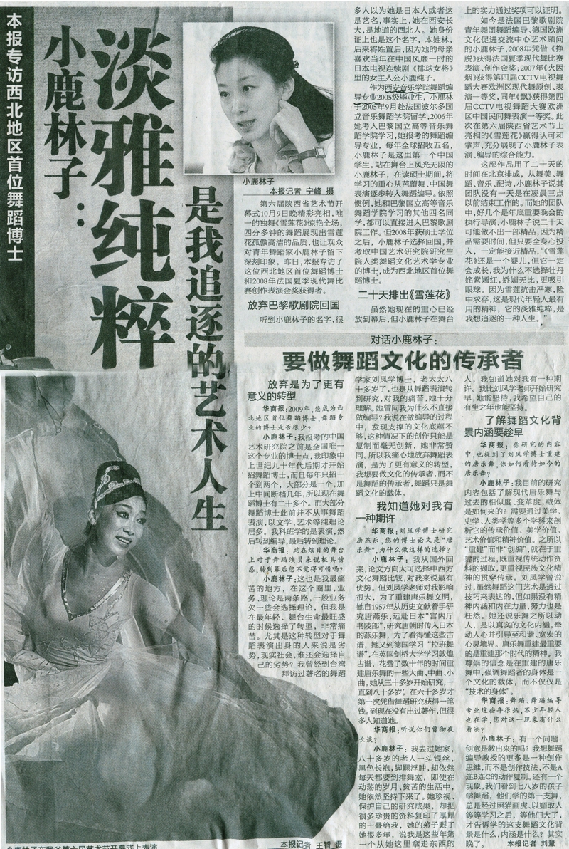《华商报》2011年10月11日 B5版 小鹿林子:淡雅纯粹 是我的追逐的艺术人生