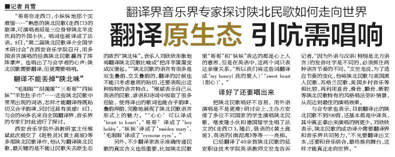 2012年12月10日《西安日报》第12版 《翻译原生态 引吭需唱响》