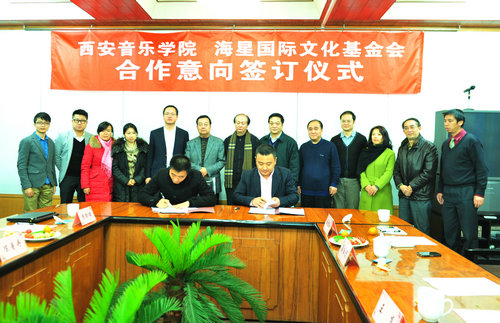 2012年12月28日下午,来自香港的海星国际文化基金会代表李炜先生,在西安与我院就演出、合作等一揽子项目事宜签署框架协议。