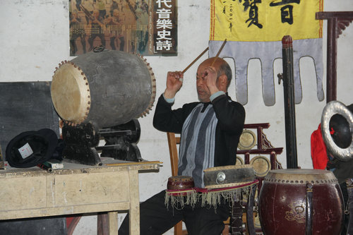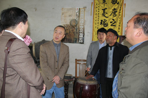 随后,在周至赵公明财神庙观看了南集贤鼓乐社行乐的演出情况,并同东村社长顾景昭先生就西安鼓乐的生存现状、结合西安旅游优势、发展文化产业等问题进行了交流。