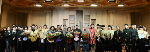 3月31日晚,附中少年交响乐团、少年民族乐团联合在学院学术厅举办招生音乐会。院党委书记安宁教授和附中七位老校友为音乐会题词。附中学生向王光耀教授、王希平副教授、魏军教授等老校友献花。音乐会演奏了六首作品,包括赵季平院长《民族交响组曲——乔家大院》中的《立志》和韩兰魁教授的《短诗四首》。音乐会现场气氛热烈,掌声雷动。