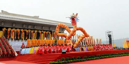 2013年4月4日上午,来自海内外的炎黄子孙,共聚桥山,祭奠中华民族的始祖——轩辕黄帝。