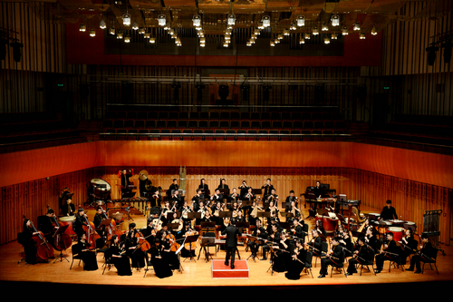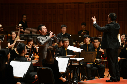 音乐会上,我院民族管弦乐团68名师生演奏了院长赵季平创作的《庆典序曲》《“芦沟晓月”——〈大宅门〉写意》《管子与乐队--丝绸之路幻想曲》、赵季平与鲁日融共同创作的《长安社火》、谭盾创作的《石板腰鼓》(选自《黄土地》)、郭文景创作的《阿瓦山》(选自《滇西土风三首》)、李复斌创作的《赛龙夺锦》等经典曲目。精彩的演绎,迷人的旋律,深深打动了每一位观众。在热烈的掌声中,乐团又加演了《射雕英雄传》插曲和《好汉歌》两首作品。