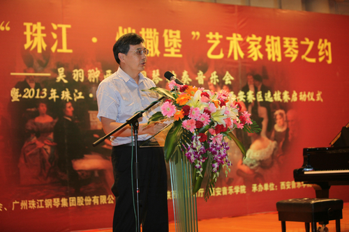 本次比赛由中国艺术教育促进会、广州珠江钢琴集团股份有限公司主办,我院协办。广州珠江钢琴集团有限公司党委书记、董事长施少斌,我院资产公司总经理祝兴柱、朱雀琴行经理徐胜利等,还有来自陕西省各地青少年校外活动中心的钢琴骨干教师参加仪式。祝兴柱致开幕词,施少斌讲话,吴羽翀演奏了肖邦、斯卡拉蒂、海顿等著名钢琴曲。