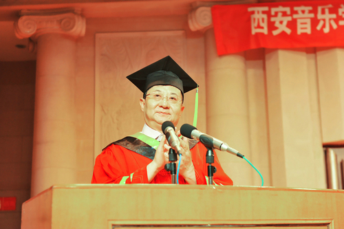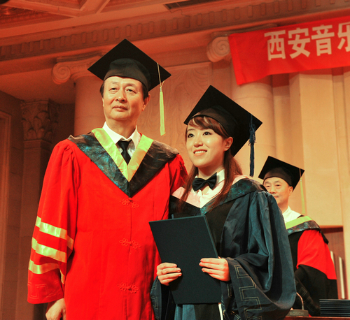 院长赵季平为毕业生正冠扶苏并与之合影