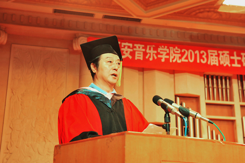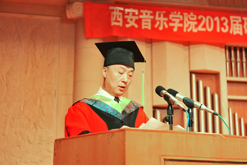 典礼在庄严的国歌声中拉开帷幕。孙卫国宣读了《西安音乐学院2013届硕士学位授予决定》,决定授予华夏等99名2013届研究生硕士学位;韩兰魁宣读了2013届硕士研究生优秀学位论文获奖名单,导师代表高士杰、王光耀为12名获奖学生颁奖;闫志才代表导师、张晨代表毕业生先后发言表示祝贺与感谢。