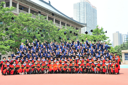 在学位授予仪式上,99位身着硕士服的毕业生满怀收获的喜悦次第登上主席台,院领导一起为大家颁发了学位证书,赵季平为大家一一正冠扶苏,并与之合影留念。