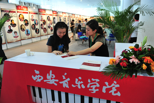 开幕式结束后,陕西省副省长庄长兴、省委教育工委书记李仲为、省教育厅厅长李兴旺等饶有兴致地观看了我院展位。王平从“学子四方”、 “峥嵘岁月”、“服务社会”、“艺术实践”、 “合作办学”等方面介绍了学院的发展历程、基本现状以及近年来创新人才培养与教育教学的成果。庄长兴不时地询问了解,并对我院在人才培养、引领和服务陕西音乐文化教育方面的突出贡献表示肯定。