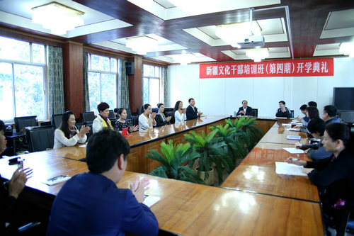 孙卫国阐述了为新疆培养文化艺术人才的现实意义,回顾了前三期学员培训情况,要求学院相关部门提高认识,提供优质服务保障,加强对培训班的日常管理,为学员创造安心舒适的学习环境。同时希望培训班学员明确使命,珍惜机会,转变角色,搞好团结,刻苦学习,全面提高专业技能和艺术修养,学有所成后顺利结业,为建设繁荣富强和美丽富饶的新疆做出应有贡献。