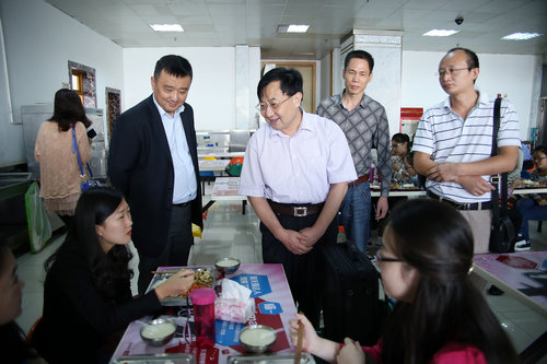 2013年9月26日中午,党委书记李映方深入到我院学生餐厅调研,了解伙食管理工作情况,听取学生的意见和建议。副院长王真陪同,群众路线教育实践活动办公室成员和后勤处、伙食科负责同志也一同参加。
