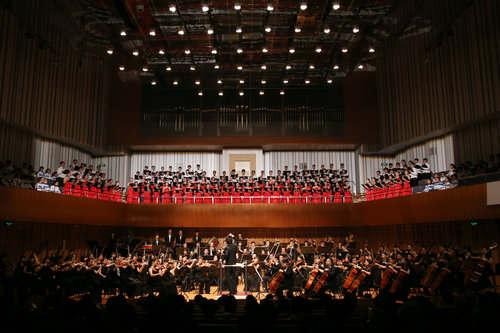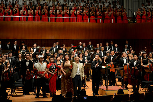 由著名青年指挥家侯颉,国际著名女高音歌唱家、我院教授和慧,著名琵琶演奏家、中国音乐学院教授杨靖,陕北歌王王向荣,十大陕北民歌手王晓怡组成的“全明星”阵容,备受社会各界关注;我院交响乐团和百人合唱团的精彩演绎更是气势磅礴、魅力四射。正如民族音乐学家乔建中在展演之后的座谈会上所言:本场音乐会作品好、指挥好、独唱独奏好、合唱好、乐队好,可谓五好音乐会,堪称完美;音乐会的成功演出足以看出,母校近年来在学科建设、人才培养、教学管理等方面的全新面貌。著名作曲家景建树形象地描述道:学校成功地以本场音乐会的“小我”,彰显了对陕西音乐教育事业发展和西部音乐文化传承所做出的“大爱”。