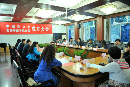 2013年10月14日下午,中国致公党西安音乐学院支部成立大会在培训中心二楼会议室隆重举行。院党委书记李映方、致公党陕西省委员会筹委会主任陈超出席并作重要讲话,致公党陕西省委筹委会秘书长羌薇主持。