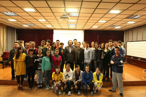 2013年10月16日,中央音乐学院钢琴系党总支书记、副主任、著名手风琴演奏家、教育家曹晓青教授,在我院举办手风琴教学公开课。