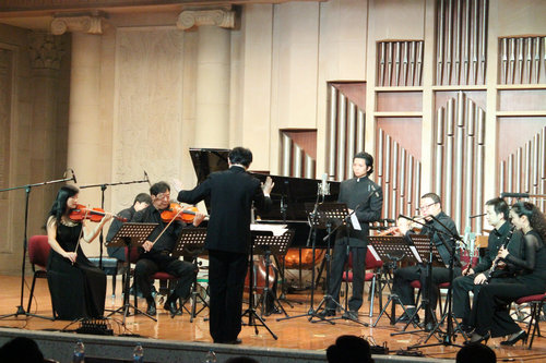 第四场为作曲系师生新作品音乐会Ⅱ。这场室内乐作品音乐会由我院作曲系、管弦系共同主办,并获得音乐工程系、钢琴系的大力支持。创作体裁包括钢琴独奏、弦乐四重奏、五重奏以及小型室内乐混合编制。8首作品中首演所占比率约50%。创作人员包括我院中青年作曲家、特聘教授,及青年教师;参加演出的人员均为管弦系、钢琴系各专业的师生。演出不仅体现了音乐家们对于音乐作品的技术层面有着出色的演绎,并在其精神内涵方面有着深刻的理解与共鸣,也为“乐和长安2013”活动画上了圆满的句号。