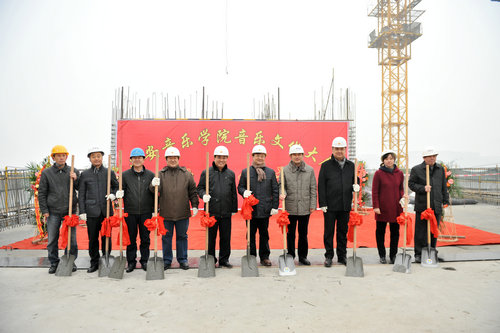 2013年12月19日上午,我院音乐文化大厦正式封顶。党委书记李映方,党委副书记、常务副院长孙卫国,副院长白陆平、王真和承建、参建单位领导出席,我院有关部门负责人、建设施工单位相关人员参加了封顶仪式。