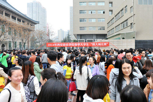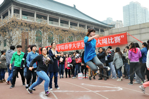 2014年3月19日下午,院团委在操场举行了主题为“跳出青春旋律,舞动活力音符”的跳大绳比赛。本次比赛以班级团支部为单位组队,每队十人,摇绳两人,比赛限时两分钟,次数多者为胜。