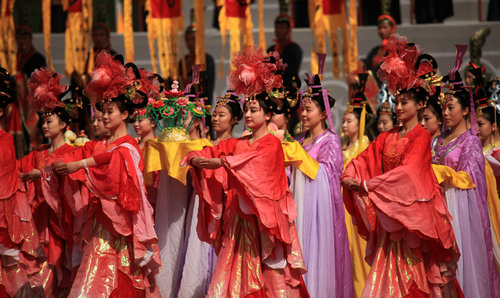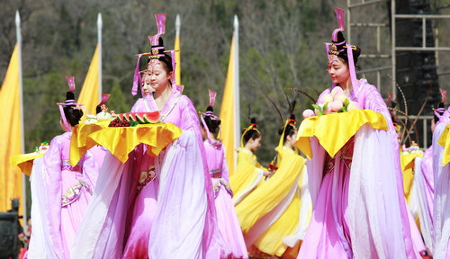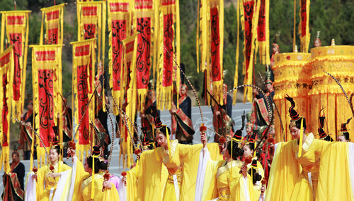 2014年4月5日,甲午清明公祭轩辕黄帝典礼在黄陵县桥山黄帝陵祭祀大殿举行。海内外万名炎黄子孙恭敬肃立,同祭始祖。