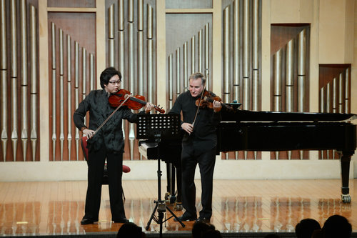音乐会奏了从巴洛克到现代派多种风格的经典曲目:包括兴德米特《第二小提琴奏鸣曲》、巴赫《第二无伴奏组曲“恰空”》;他还与我院管弦系中提琴教师王恪居、钢琴教师陈亮合作,分别演奏了马提怒的《三首牧歌——小提琴与中提琴二重奏》和贝多芬《第五“春天”奏鸣曲》。Peter Zazofsky的演奏生动鲜活、变化丰富,展现出深厚的艺术功底和音乐修养,尤其是对于作品的独到见解,令人信服。
