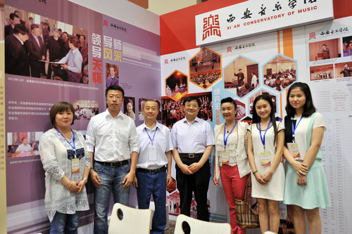 6月13日上午,展会开幕式在陕西师范大学举行,陕西省高教工委书记李仲为、教育厅厅长李兴旺、高教工委常务副书记董小龙、副厅长郭立宏、省政府学位委员会秘书长袁宁,我院党委书记李映方、副院长韩兰魁等领导出席展会并观看了我院展位。在对我院研究生工作成果创新、人才培养和服务陕西音乐文化教育科研方面做出的成绩,省厅领导给与了肯定。观看了我院的展示后,李映方要求研究生教育工作要提高质量意识,加强创新实践,进一步提高创新能力,为研究生就业创业工作提供良好的平台。