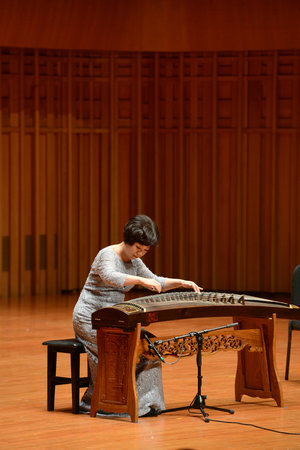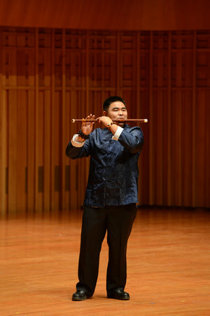 音乐会由一曲琴箫合奏——《望月》开始,三位名家、三种乐器每人两首曲目,顺序为古筝、竹笛、二胡,古筝的《渔舟唱晚》、《香山射鼓》,笛子的《姑苏行》、《帕米尔的春天》,二胡的《豫北叙事曲》、《秦风》等等,这些作品被演奏家们演绎的沁人心脾。演出结束后,热烈的掌声持续响起。金伟教授返场登台,加演了《欢庆锣鼓》片段。