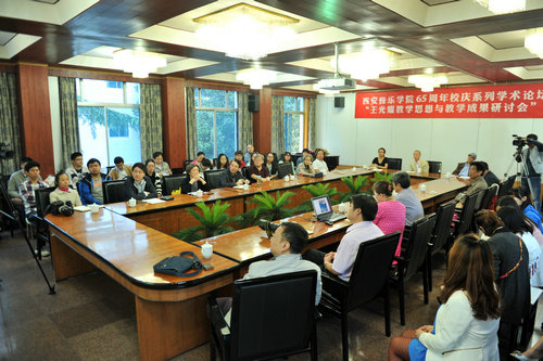 2014年9月14日上午,由我院主办,视唱练耳教研室、西北民族音乐研究中心共同承办的“王光耀教学思想与教学成果研讨会”在我院举行,由此拉开了学院六十五周年校庆系列学术论坛活动的帷幔。