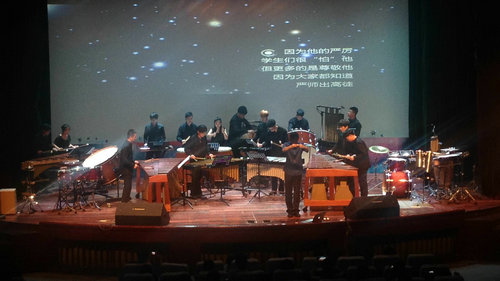 日前,在第九届全国青少年打击乐比赛中,我院2620打击乐团(指导教师:韩晓静)获得了两金、三铜的佳绩,获奖作品分别是《Tambourine》 《Cadanzi》《Prelude to heaven》和《木之赋》《巴赫的幻想》。2620打击乐团还与青年演奏家刘恒、中央音乐学院附中打击乐教师倪冉冉一起举办了《光——刘亚光先生追思音乐会》,在全国打击乐行业中引起了很大的反响。中国打击乐学会会长金纪广先生和上海打击乐协会秘书长陈少仑先生赞扬这是一场“用心灵演奏的音乐会”。同时,上海市打击乐协会给予‘刘亚光’先生“打击乐终身成就奖”的荣誉。韩晓静再次荣获年度十佳打击乐教师。
