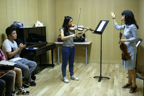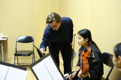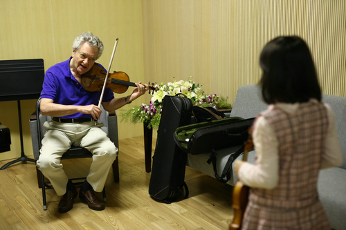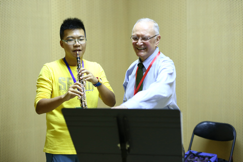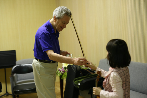 美国茱莉亚音乐学院教授,获得多次国际大奖的小提琴大师数路易斯·卡普兰(Lewis Kaplan)是本次音乐节的领军人物。大师课期间,他对我院在校学生的精彩表现赞不绝口。尤其是对作为陕西音乐社会教育重要阵地的西安音乐学院培训中心的小学生司佳玉给与了高度赞扬。作为旁听生的司佳玉是一名小学三年级学生,在我院培训中心学习小提琴2年多。当卡普兰得知孩子仅仅才有两年多学习经历之后,给予了司佳玉很高的评价:“孩子演奏的很好,很有天赋!”并对其进行了指导,特别是对如何揉弦、如何控弓进行了详细、耐心的指导。指导结束后卡普兰教授亲自到此次活动主委会与相关工作人员进行协调,录取司佳玉成为此次音乐节年龄最小的学员。查尔斯·尼迪什(Charles Neidich)是国际最著名的单簧管演奏家和教育家之一。在课堂上查尔斯对我院学生大加赞赏:“这里的学生非常有天赋,专业素养素养很高,仅仅半天我就发现几名孩子的进步非常大,很令人吃惊!”