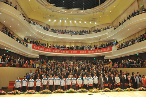 赵季平在讲话中,满怀深情地简要回顾了我校65年的光荣历史和辉煌成就,表达了对学院美好未来的信心和决心。赵季平说,今天的西安音乐学院,正处于一个上升发展的最佳时期。我们提出了“在保持精英教育基础上,着力办好音乐艺术复合型、大众化、应用型人才培养”的办学定位;明确了“坚持内涵发展,强化育人环节,建设高水平音乐学院”的发展目标,制定了根据地方社会文化发展需要力抓学科专业建设,调整学科专业结构,重点扶持与西部地区社会文化发展密切相关、具有鲜明特色的学科专业,深度参与陕西文化强省建设事业和引领陕西区域音乐文化的水平提升工作的远景规划。遵循高等教育的普遍规律与艺术教育的特殊规律相结合的原则,不断拓宽办学视野,大力发展应用学科专业,积极发展新兴学科专业,积极推进艺术学理论学科的建设与发展,推进新兴、边缘和交叉学科建设,增强发展内在活力,努力把西安音乐学院建设成我国西部地区规模最大、质量最高、特色最鲜明、引领音乐文化发展功能最强大、始终服务地方经济文化建设需要、在全国有重要影响力的高水平音乐院校。赵季平强调指出,今天我们深情回顾西安音乐学院65年的办学历程,系统总结学院往昔的风采,目的是要凝聚各方智慧和力量,努力开创学院美好的未来。前辈们艰苦奋斗得来的成果,我们会倍加珍惜,薪火相传。我们相信,有省委省政府的坚强领导,有兄弟院校、社会各界和广大校友的鼎力支持,有全院教职员工的齐心协力,我们向高水平音乐学院建设的既定目标一定会实现,也一定能够实现。